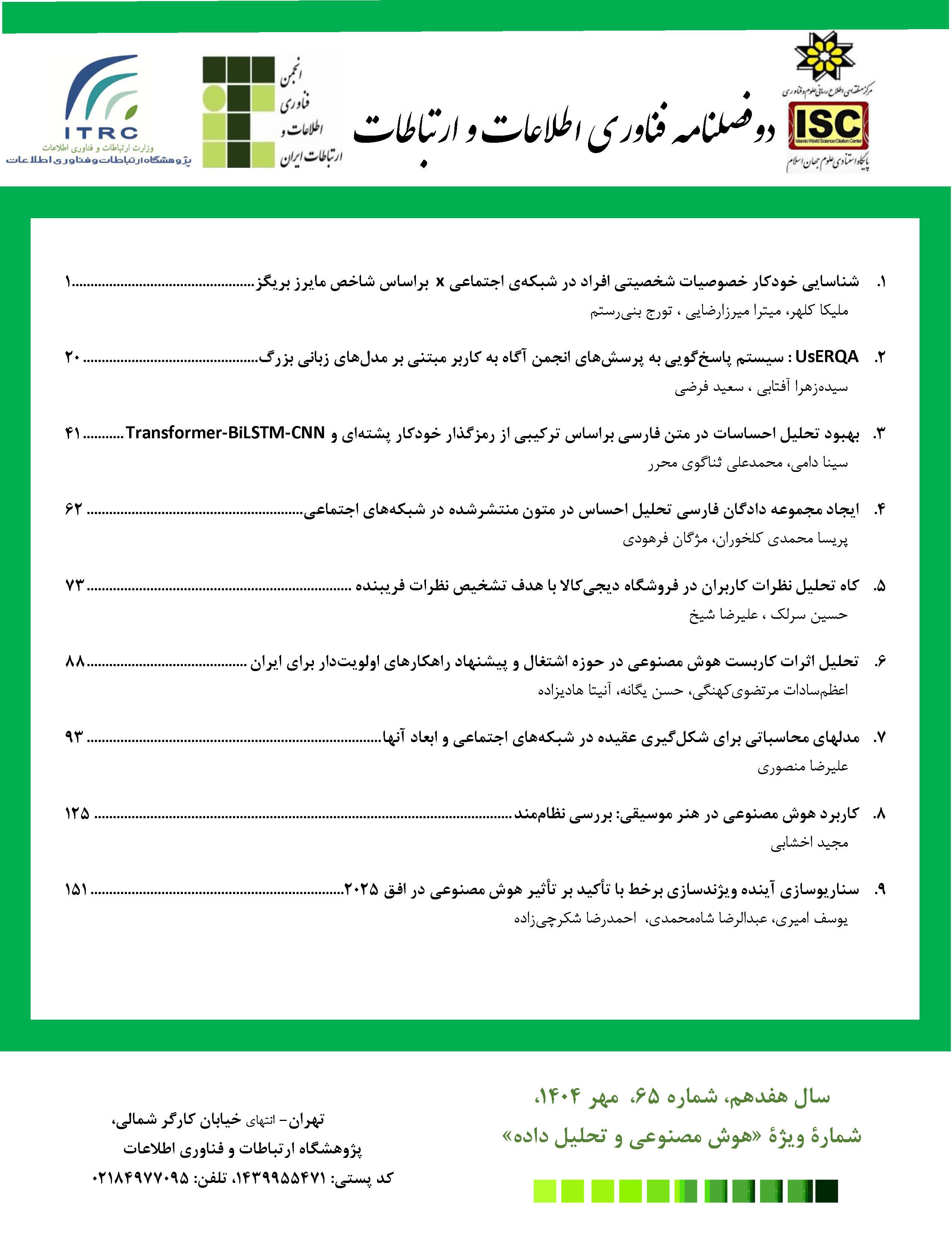 • ✓ شماره 63 , 64 - بهار - تابستان 1404